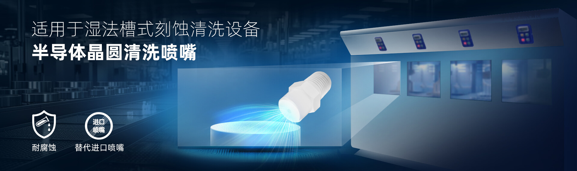 產(chǎn)品:實(shí)心錐噴嘴 應(yīng)用: 噴嘴安裝于槽式濕法刻蝕設(shè)備里,通過(guò)配合不同化學(xué)藥液,有效去除晶圓表面顆粒、有機(jī)物和金屬離子,應(yīng)用于晶圓制造、MEMS制造,以及功率器件制造領(lǐng)域。 工業(yè)噴嘴專業(yè)制造商🔥 品質(zhì)可靠·規(guī)格齊...